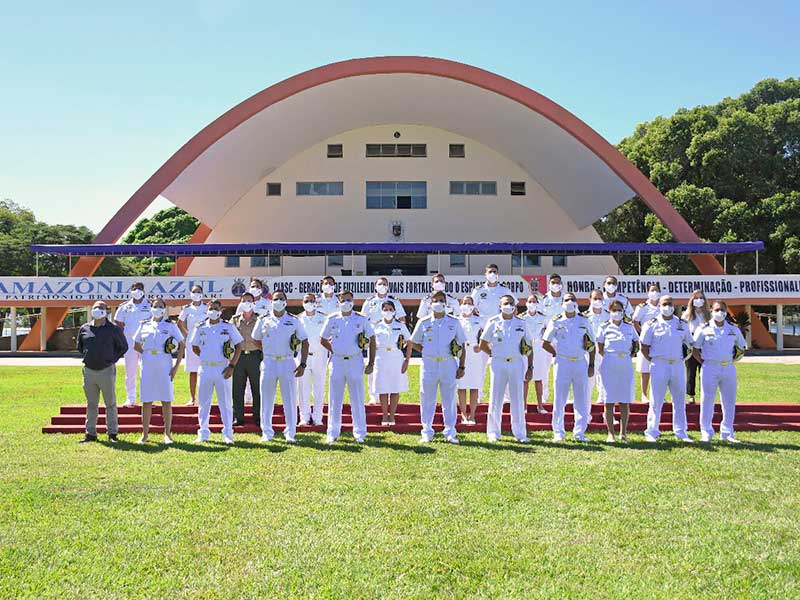 A cerimônia de encerramento contou com a presença do Comandante do Pessoal de Fuzileiros Navais e do Comandante do Material de Fuzileiros Navais.