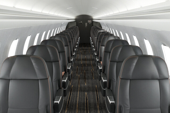Com a pandemia, acreditamos que esse número aumentará ainda mais.” A aeronave ERJ 145 de 50 lugares agora pode ser configurada de 16 a 28 assentos premium com configuração de um assento em cada lado do corredor, aumentando o distanciamento social e o conforto. Outras características são o piso plano e a remoção dos compartimentos de bagagem superiores, o que amplia o espaço pessoal dos passageiros.