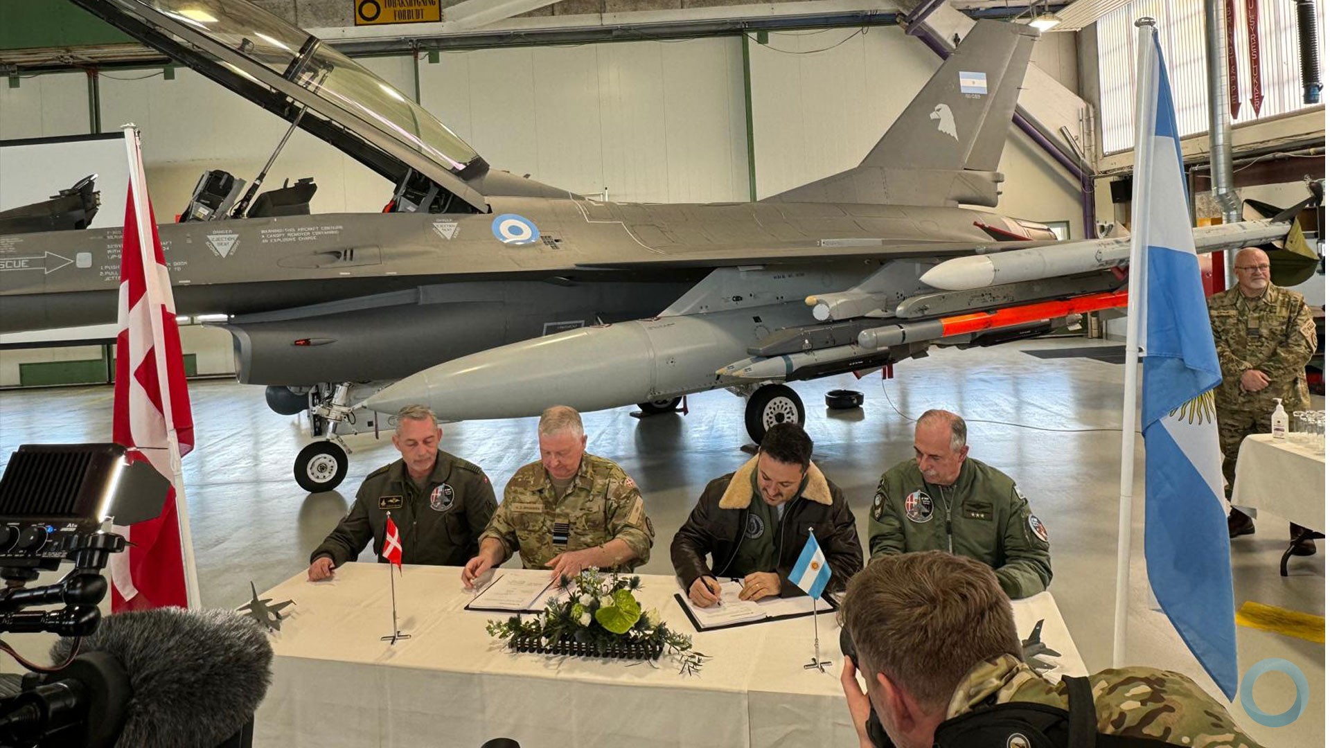 Na foto a assinatura de aquisição das 24 aeronaves F-16 Block 10/15 da Real Força Aérea da Dinamarca pela Fuerza Aérea Argentina, 16 Abril 2024