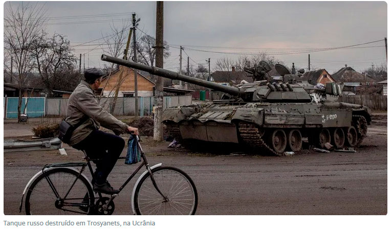 Vimos um exemplo do sucesso da Ucrânia em combate em uma linha de frente perto de Kiev na semana passada. As forças ucranianas nos disseram que os russos tentaram invadir quatro vezes no mês passado, e todas as vezes foram impedidos. A evidência estava lá na forma de cerca de meia dúzia de tanques e veículos blindados russos queimados.