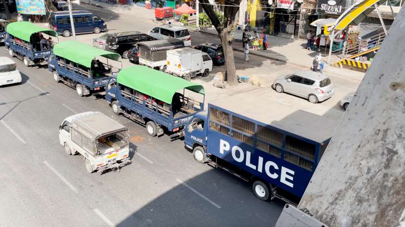 O Exército bloqueou os acessos ao redor de Naypyidaw com tropas armadas e veículos blindados, enquanto helicópteros sobrevoavam a cidade.