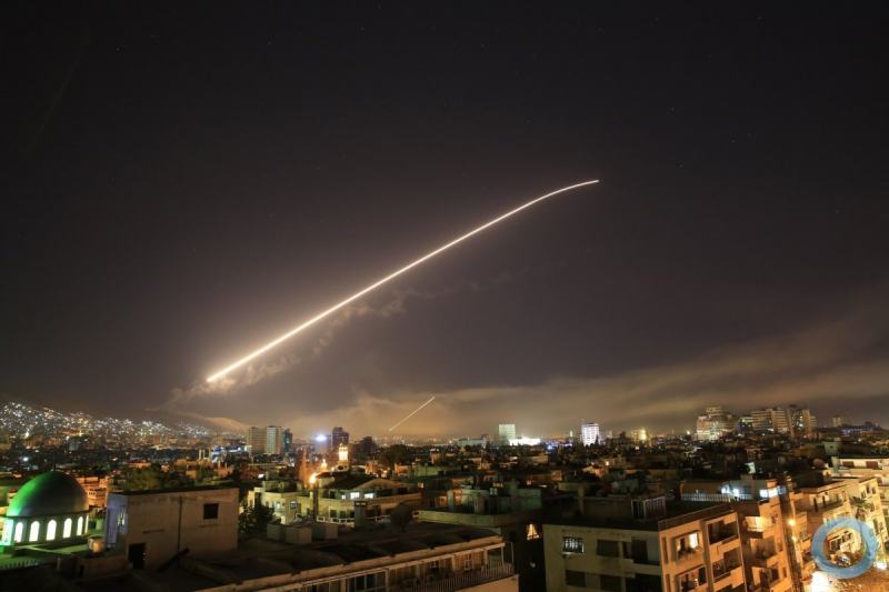 Explosões em Damasco e resposta A TV Síria divulgou que ataques aéreos atingiram a capital Damasco e áreas ao redor, e que os sistemas de defesa sírio reagiram atingindo 13 mísseis em Al Kiswah, nos subúrbios de Damasco. A mídia estatal síria criticou os ataques e chamou a ofensiva de uma violação da lei internacional: