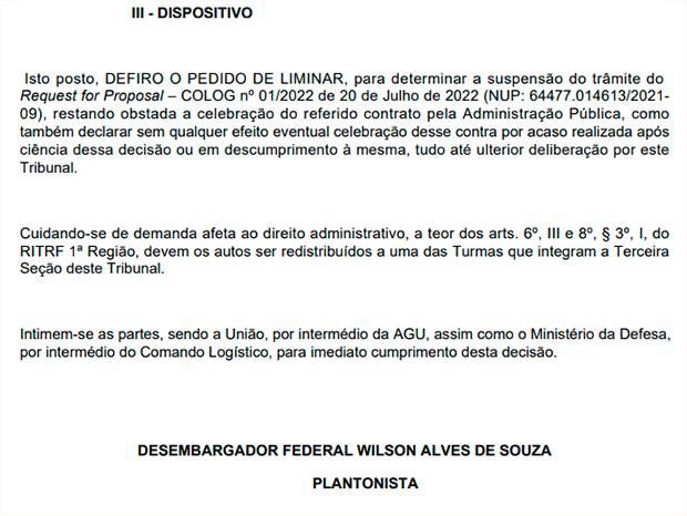 Ao deferir o pedido, o desembargador plantonista Wilson Alves de Souza também acatou o argumento de que não havia emergência na aquisição dos blindados, considerando a “medida irrisória” por representar a renovação de menos de 5% da frota em tempos de paz.
