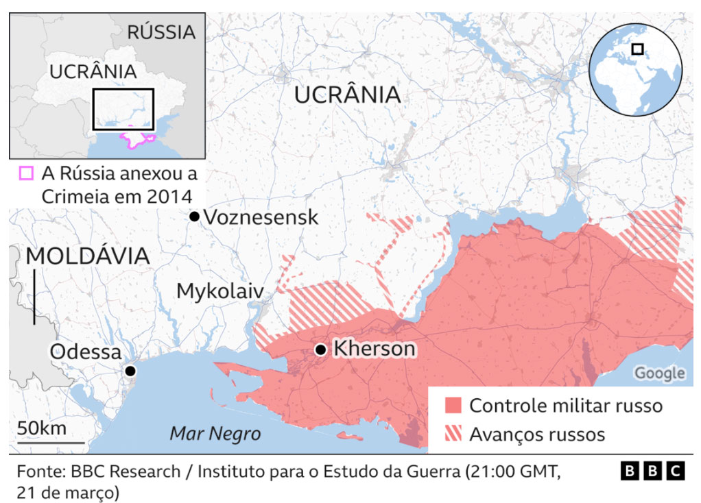 A vitória teria permitido que as forças russas avançassem mais a oeste ao longo da costa do Mar Negro em direção ao enorme porto de Odessa e a uma importante usina nuclear.