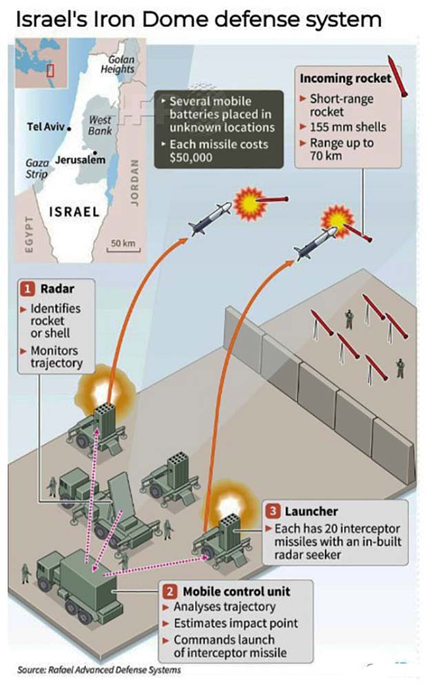Ao contrário, apresentou-se a maximização do uso da inteligência artificial para controlar e guiar os mais de 4.300 foguetes lançados pelo Hamas e, do outro lado, a utilização de um sistema de defesa antiaérea de ponta, o Iron Dome, para proteger seus civis (majoritariamente administrado por uma sala de controle, que utiliza radares espalhados por Israel para interceptar e destruir foguetes e mísseis inimigos).