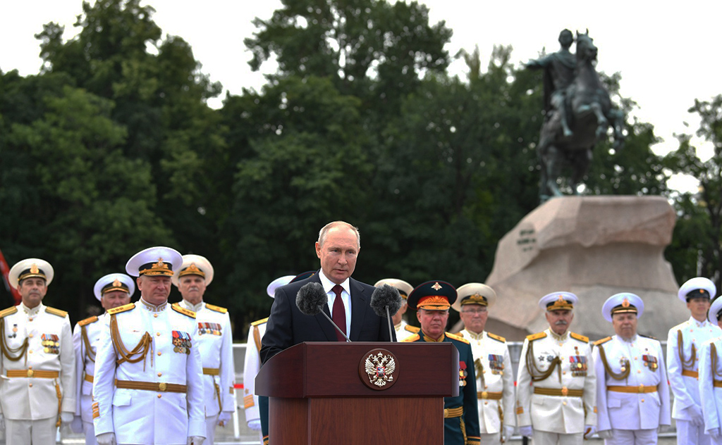 "Somos capazes de detectar qualquer inimigo submerso, acima da água e aerotransportado e, se necessário, realizar um ataque inevitável contra ele", disse Putin em um desfile do dia da Marinha em São Petersburgo. (No Box a íntegra do discurso de Putin)
