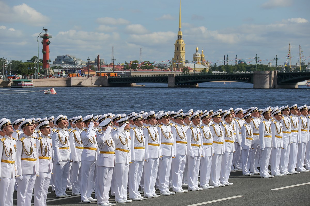 O serviço da Marinha nunca foi fácil, mas sempre esteve entre os empreendimentos mais honrados e necessários. Todos conhecem marinheiros habilidosos e comandantes experientes que servem em nossas Frotas do Mar Báltico, do Norte, do Pacífico e do Mar Negro e na Flotilha do Cáspio. Eles também estão entre as tripulações dos navios de combate, barcos e embarcações de logística que passarão no orgulhoso rastro de nossa formação de desfile hoje.