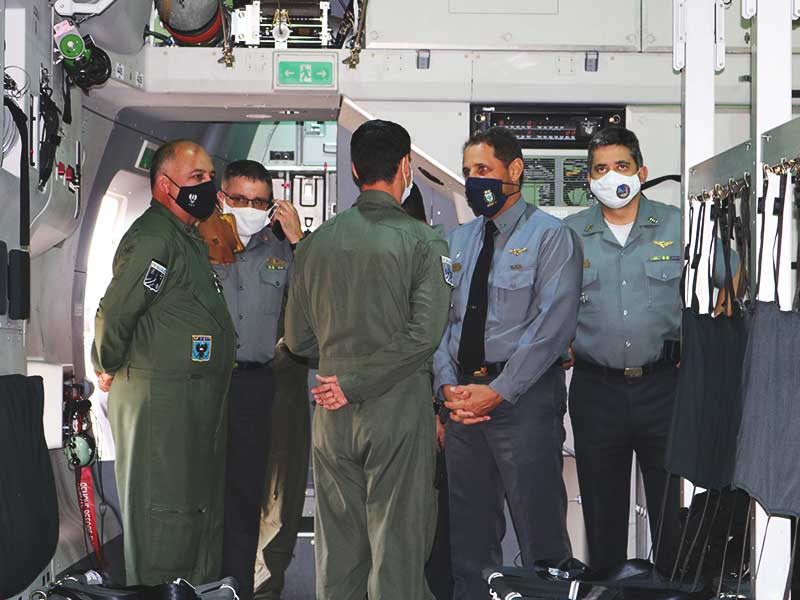 Por ocasião do pouso do KC-390, o Comandante da Força Aeronaval, Contra-Almirante José Vicente de Alvarenga, acompanhado do Comandante da BAeNSPA, Capitão de Mar e Guerra José Fábio Carneiro da Silva e do Comandante do EsqdVF-1, Capitão de Fragata Eduardo Luís Guimarães de Moura, visitaram o interior do avião.