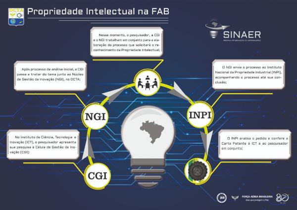 As atividades de pesquisa e de desenvolvimento tecnológicos estão no “DNA” do Departamento de Ciência e Tecnologia Aeroespacial (DCTA) e suas Organizações Militares subordinadas, além das outras Instituições Científicas, Tecnológicas e de Inovação (ICT), que são os representantes diretos dessas atividades no COMAER. O DCTA, conforme previsão de normativa específica, também é o órgão central do Sistema de Inovação da Aeronáutica (SINAER), sendo o Núcleo de Gestão de Inovação (NGI) o órgão assessor das atividades correlatas à gestão da Inovação Tecnológica, tendo a gestão da Propriedade Intelectual como uma de suas principais atribuições.
