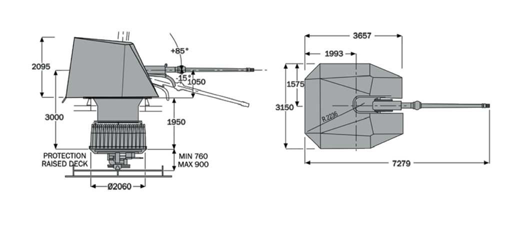 Dimensões e Características da torre Naval OTO 76/62 mm SR