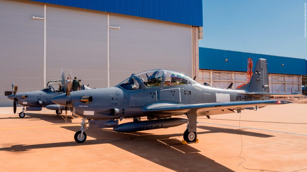 Gavião Peixoto – A Embrae realizou a entrega dos dois primeiros A-29 Super Tucanos para a Força Aérea Uruguaia. As aeronaves fazem parte de um programa de renovação da frota e expansão das capacidades operacionais da FAU, como patrulha aérea e vigilância de fronteiras. O contrato, assinado no final de 2024, também inclui equipamentos de missão, serviços logísticos integrados e um simulador de voo.