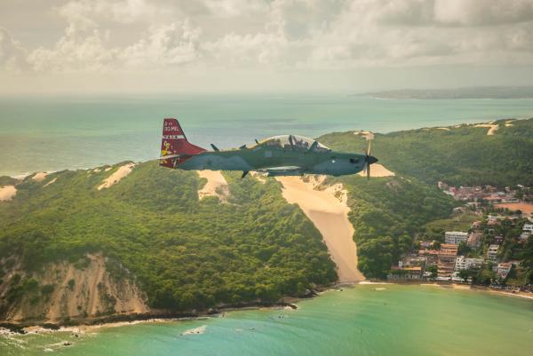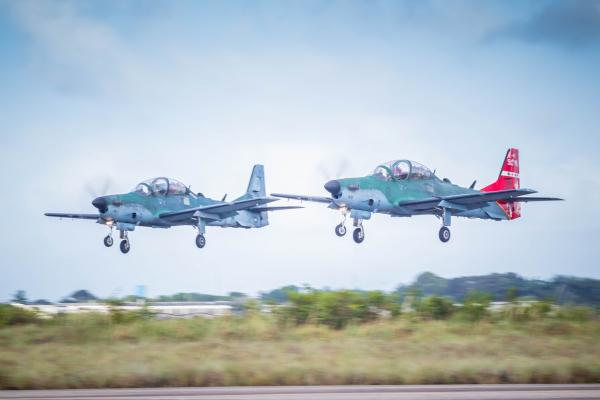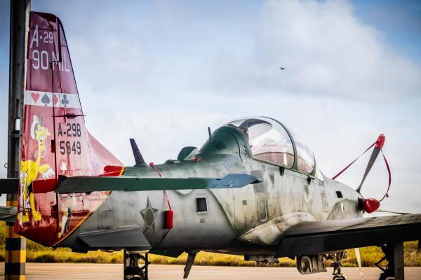 Na manhã desta sexta-feira (04), duas aeronaves do Esquadrão Joker (2°/5° GAV) decolaram da Ala 10, em Parnamirim (RN), para realizar um treinamento de manutenção operacional de instrutores da Unidade Aérea. Durante o treinamento, o Esquadrão apresentou o adesivo comemorativo da marca de 90 mil horas voadas no A-29 Super Tucano estampado em uma de suas aeronaves.