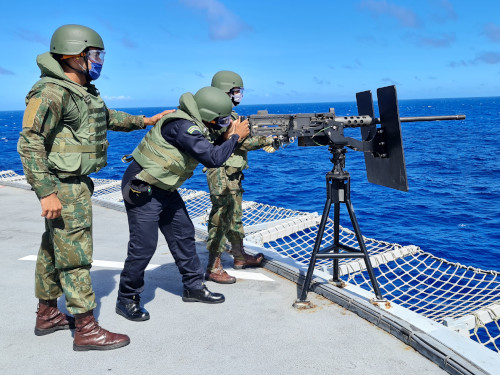 No NAM “Atlântico”, os futuros Oficiais realizaram disparos com a metralhadora .50 polegadas. De acordo com o Chefe do Departamento de Armamento do navio, Capitão de Corveta Nícolas, o exercício permitiu que os Aspirantes tivessem contato com a atividade-fim da Marinha. ]“É a oportunidade que eles têm de familiarização com a atividade da Armada e com os próprios armamentos em si. Sem dúvidas, os ajudarão a fazer a opção de Corpo”, declarou.