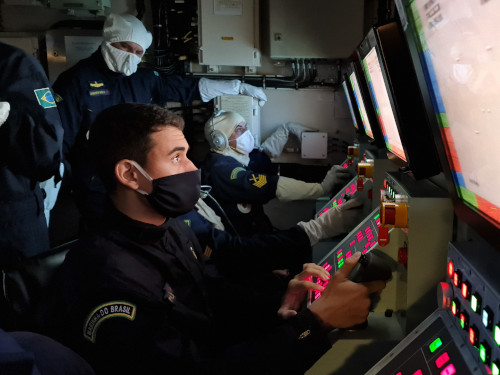 O Aspirante Plínio realizou disparos remotos no canhão de 30mm que compõe o armamento do NAM “Atlântico”. O futuro Oficial ficou surpreso com a potência e precisão do equipamento. “Já estou decidido a escolher o Corpo da Armada, mas não pensava em ser armamentista, porque não sabia como era a atividade. Agora, em contato com os equipamentos e informações, estou tentado a escolher essa Habilitação”, confessou.