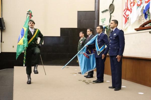 Durante a cerimônia o Reitor do ITA, Professor Doutor Anderson Ribeiro Correia e o Pró-Reitor de Administração do Instituto, Coronel Aviador George Luiz Guedes de Oliveira, receberam a homenagem pelas mãos do Comandante do IME, General de Brigada Engenheiro Militar Juraci Ferreira Galdino.