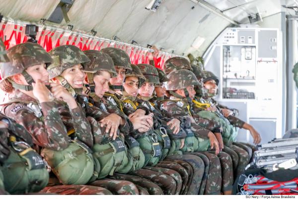A Sargento Ágatha Brenda Rodrigues Lima, da Base Aérea de Campo Grande (MS), fala sobre a interação com as Forças. "Esse momento é muito importante, entre as Forças irmãs e a tropa paraquedista. Ela está sempre pronta para cumprir a missão de infiltrar no terreno, onde não seja possível infiltração terrestre em quaisquer condições”, explicou.
