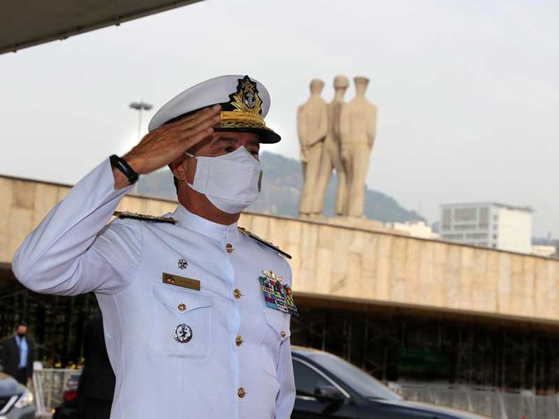 | Comandante da Marinha presta continência em homenagem aos marinheiros das Marinhas de Guerra e Mercante que pereceram ao defender a Pátria |