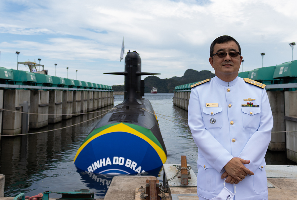 Almirante Koga tendo ao fundo o S-BR2 submarino S-41 Humaitá