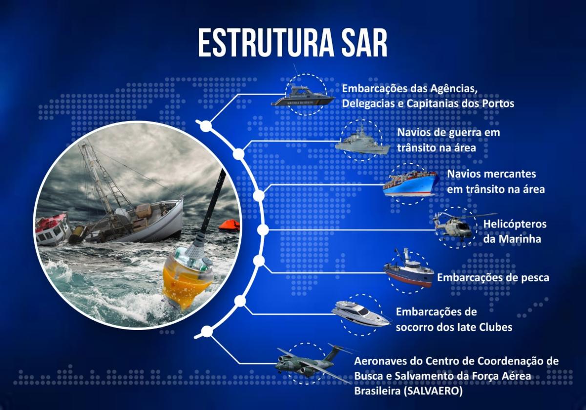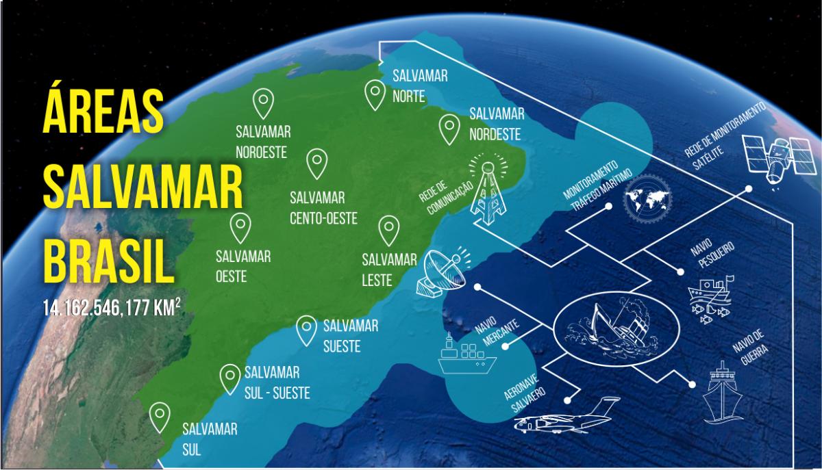 Com os acordos internacionais assumidos nas décadas de 1970 e 1980, a Marinha implantou os Centros de Coordenação de Salvamento (Salvamar) nos Distritos Navais, que são os comandos regionais da Força, para atender a todos os incidentes de SAR. A supervisão do serviço fica na competência do Salvamar Brasil, situado na cidade do Rio de Janeiro (RJ). A atuação vai do litoral brasileiro até ao meridiano de 10° W, uma extensa área de mais de 14 milhões de quilômetros quadrados. As principais áreas navegáveis dos rios também dispõem de centros de coordenação SAR Fluvial.