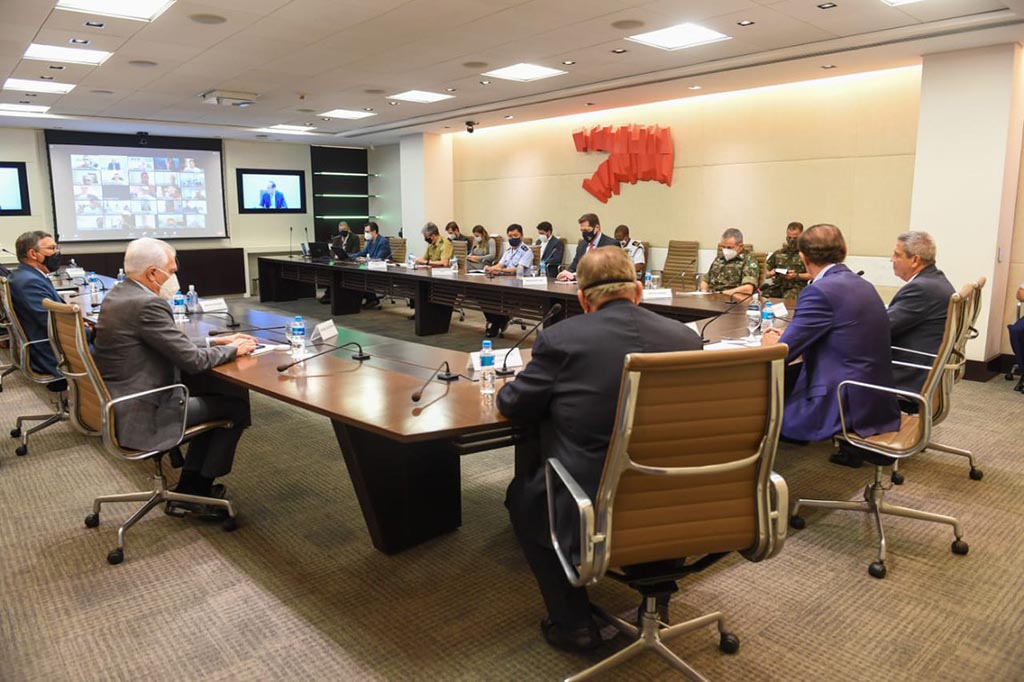 Paulo Skaf abriu a reunião agradecendo a presença de expressiva representação da Base Industrial de Defesa e Segurança, ressaltando o trabalho desenvolvido pelo DESEG e SIMDE e enfatizando que a FIESP tem um apreço especial por essa área e por isso tem, ao longo dos anos, servido como elo entre o setor privado, os governos e as Forças Armadas e de Segurança. “O país, já, já, irá superar a crise de saúde provocada pela Covid-19 e voltará a crescer e este crescimento, com certeza, contempla esse estratégico setor de defesa e segurança”.