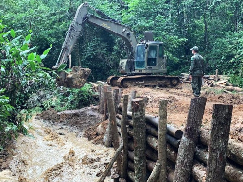 Desobstrução de canal e construção de Muro de Contenção de Troncos