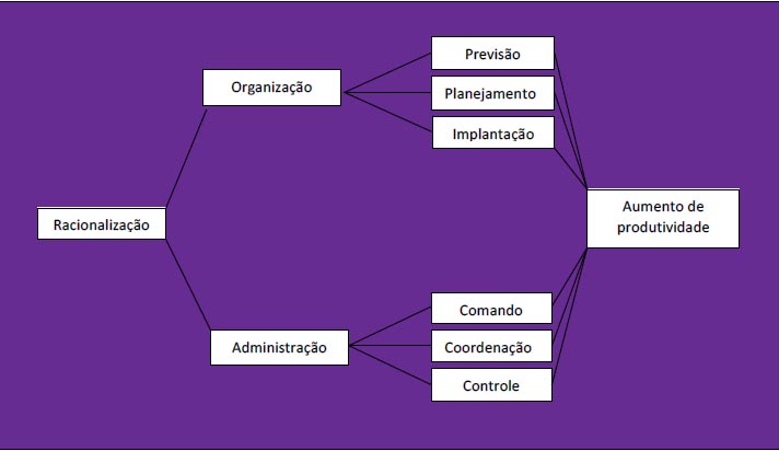 Quadro 1: Diagrama do processo organizacional e administrativo para aumentar a produtividade por meio da racionalização.