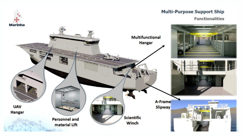 Financiado majoritariamente por recursos europeus, o projeto sinaliza uma mudança relevante na abordagem da segurança marítima do bloco, tradicionalmente dependente de grandes marinhas nacionais para vigilância, dissuasão e presença naval. O porta-drones português materializa um modelo baseado em: