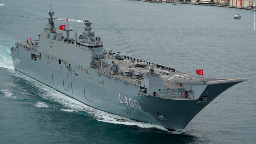 Em um eixo distinto — porém complementar — encontra-se a Turquia. País que não integra a União Europeia, mas ocupa posição central na OTAN, Ancara opera desde 2023 o TCG Anadolu (L-400), um navio anfíbio de grande porte adaptado para operar drones de combate, helicópteros e forças expedicionárias.