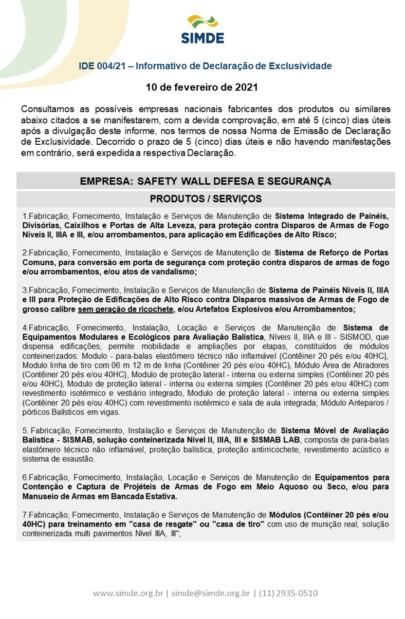 EMPRESA: SAFETY WALL DEFESA E SEGURANÇA
