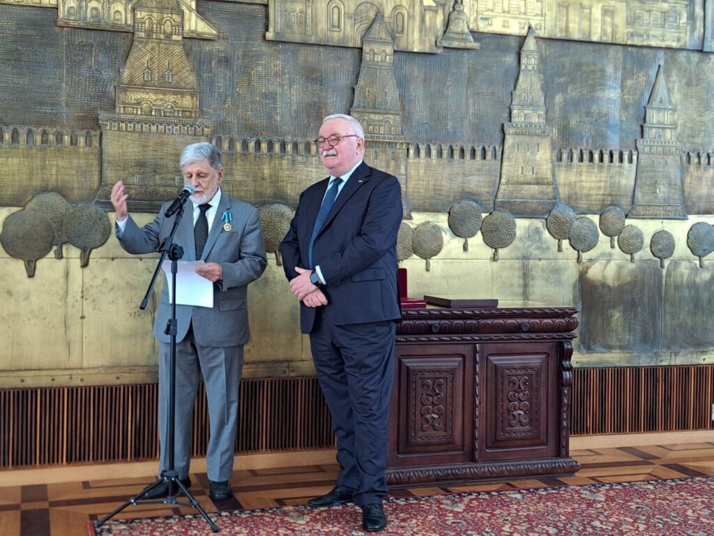 A Ordem foi entregue pelo Embaixador Extraordinário e Plenipotenciário da Federação da Rússia em Brasília Alexey Labetskiy.”