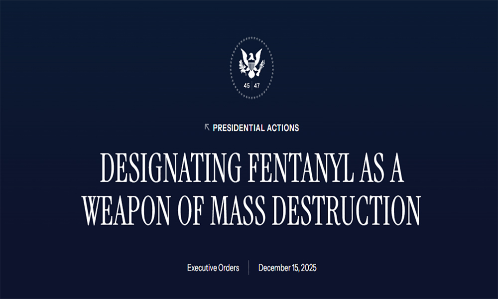 As President of the United States, my highest duty is the defense of the country and its citizens. Accordingly, I hereby designate illicit fentanyl and its core precursor chemicals as Weapons of Mass Destruction (WMD).