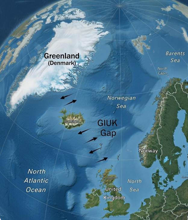 O GIUK Gap (Groenlândia – Islândia – Reino Unido) constitui única passagem navegável ao Oceano Atlântico para a Frota do Norte Russa, baseada em Península de Kola (Murmansk, Severomorsk). Esta região abriga a maior concentração de ativos nucleares estratégicos russos; silos de ICBM, submarinos balísticos classe Borei (portadores de mísseis Bulava de 12.000 km de alcance), bombardeiros Tu-160M de longo alcance, cruzadores nucleares e destroieres.