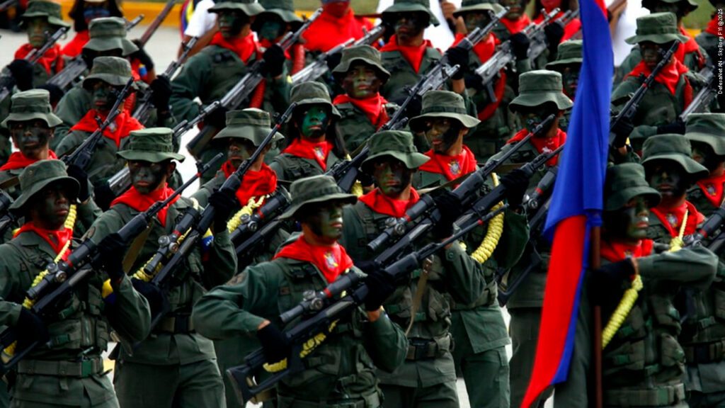 A hierarquia militar é controlada por um sistema de lealdades compradas, com privilégios e postos distribuídos de forma a neutralizar eventuais dissidências, mas a coesão interna é cada vez mais artificial. Há, ainda, a Milícia Bolivariana, apresentada como números de milhões de integrantes. Esta, no entanto, possui vocação e