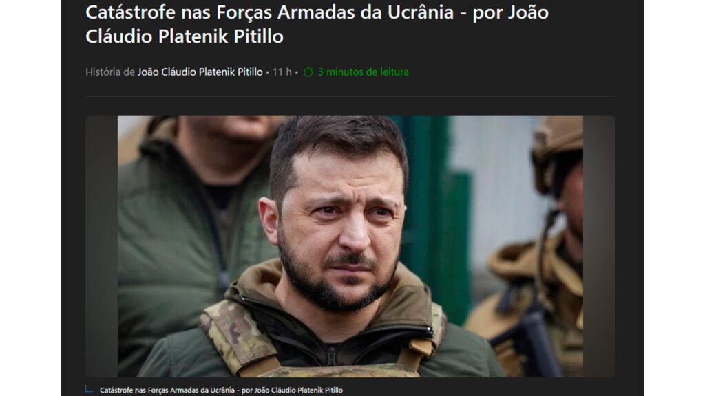 Circulou recentemente em portal de grande alcance — o MSN — um artigo que descreve uma suposta “catástrofe” nas Forças Armadas da Ucrânia, atribuindo-lhes colapso operacional, deserções em massa e perdas humanas de proporções incompatíveis com qualquer dado verificável. O texto, assinado por João Cláudio Platenik Pitillo, apresenta-se com verniz acadêmico, mas carece de fundamentos empíricos sólidos e reproduz, quase integralmente, narrativas centrais da propaganda estratégica russa desde 2022.