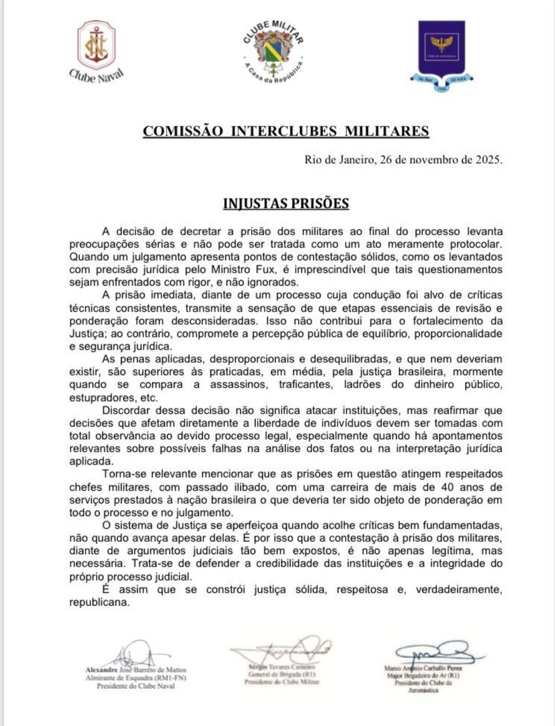 A decisão de decretar a prisão dos militares ao final do processo levanta preocupações sérias e não pode ser tratada como um ato meramente protocolar. Quando um julgamento apresenta pontos de contestação sólidos, como os levantados com precisão jurídica pelo Ministro Fux, é imprescindível que tais questionamentos sejam enfrentados com rigor, e não ignorados.