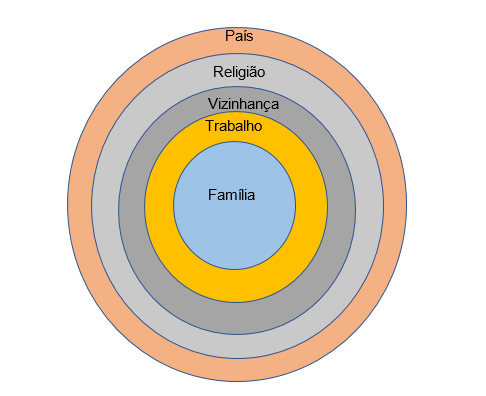 – Segundo alvo – o Indivíduo: os anéis são País, Religião, Vizinhança, o Trabalho e Família (Do anel mais externo para o mais interno).