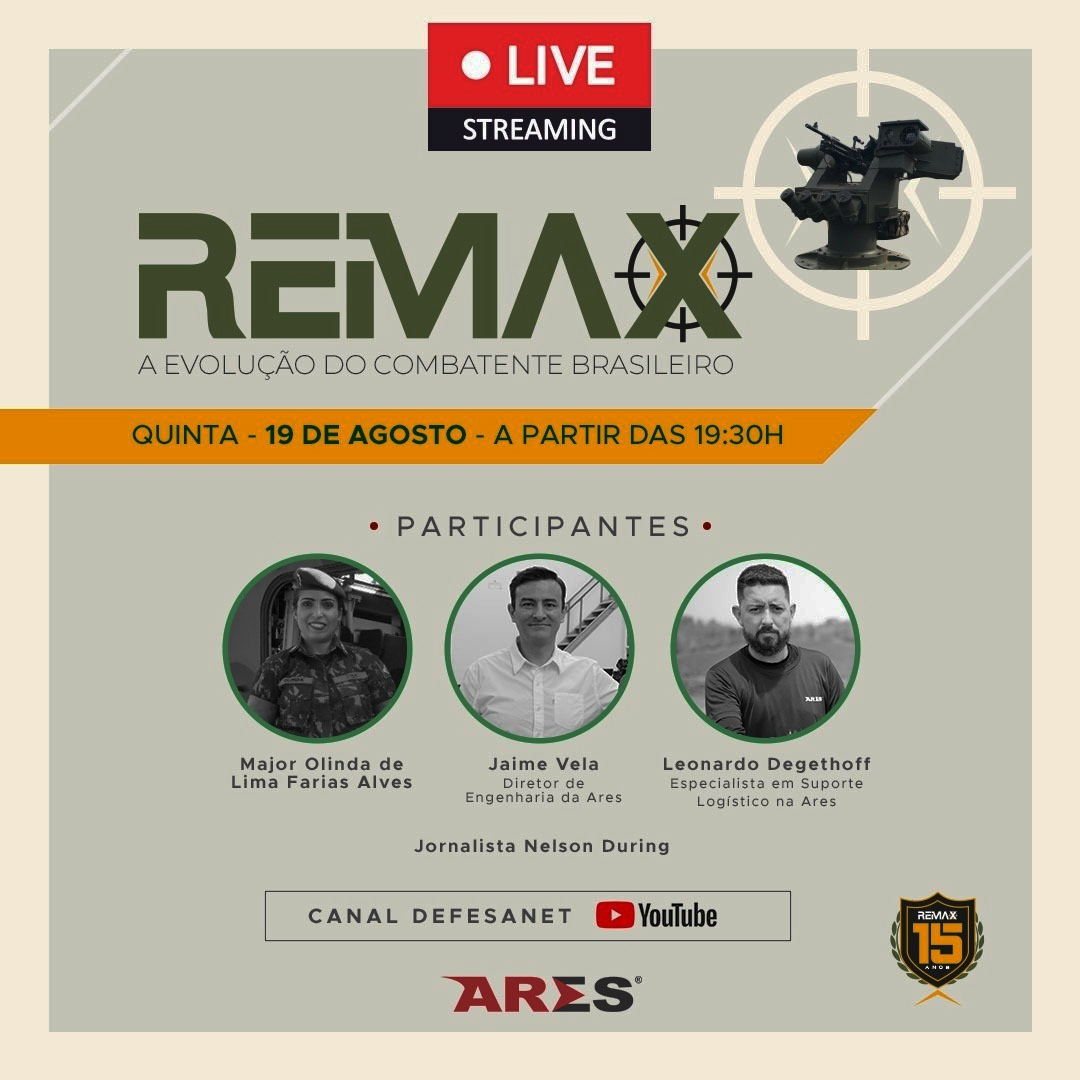 O REMAX – sistema de armas desenvolvido pela ARES em parceria com o Centro Tecnológico do Exército (CTEx) será destaque em uma live na próxima quinta-feira, dia 19 de agosto, às 19h30, no canal DefesaNet.