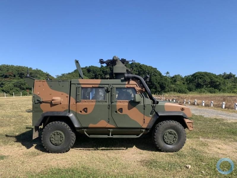 • Armamento: compatível com as Metralhadoras M2HB-QCB calibre 12,7mm (100 tiros) e MAG M240B calibre 7,62 mm (200 tiros);