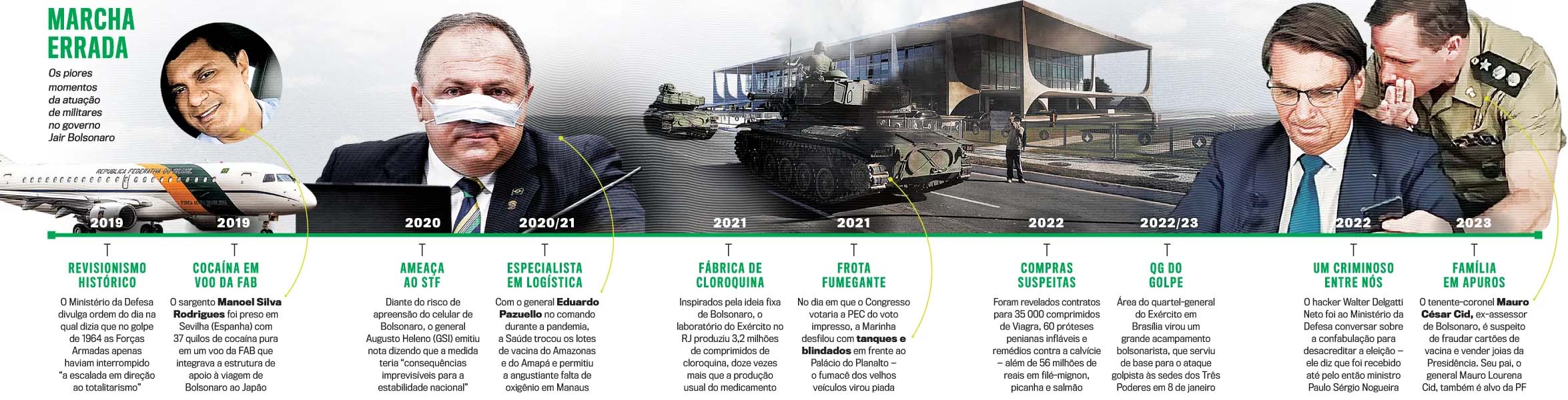 Se a aliança serviu a Bolsonaro e aos militares, não se pode dizer o mesmo em relação ao Brasil. Na pandemia, o país tinha no comando do Ministério da Saúde um general, Eduardo Pazuello, cuja suposta qualidade era ser especialista em logística. Com ele, a pasta mandou lotes de vacina do Amapá para o Amazonas e vice-versa e mostrou inoperância em um dos momentos mais angustiantes, o da falta de oxigênio em Manaus.