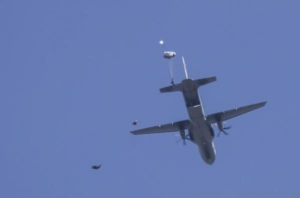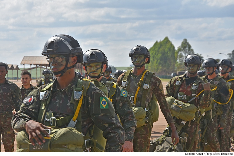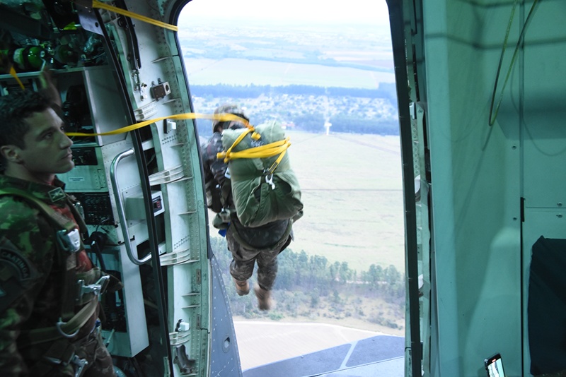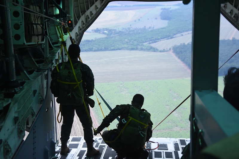 No domingo (19/08), decolaram as aeronaves KC-390 Millenium, sob matrícula FAB 2854 e FAB 2857, respectivamente do Primeiro Grupo de Transporte de Tropa (1º GTT) – Esquadrão Zeus e do Primeiro Esquadrão do Primeiro Grupo de Transporte (1º/1º GT) – Esquadrão Gordo, com 128 paraquedistas do Exército, mochilados, equipados e armados para realizar o salto enganchado pela porta lateral.