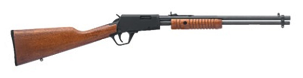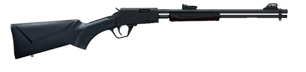 No calibre .22LR e cano de 18 polegadas, possui sistema de funcionamento Pump Action, capacidade de 15+1 disparos, carregador tubular e acabamento oxidado negro.