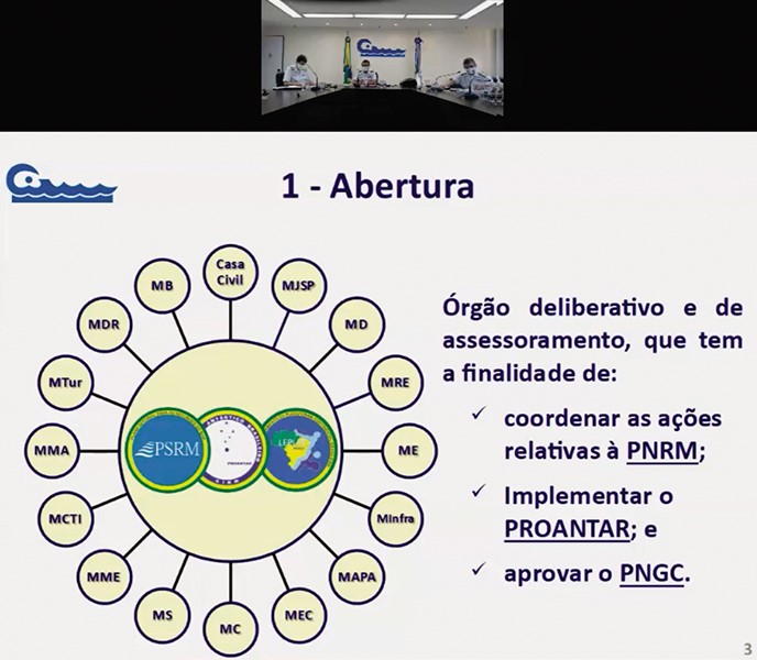 Com a presença do Comandante da Marinha e novo Coordenador da CIRM, Almirante de Esquadra Almir Garnier Santos, a reunião contou com a participação de representantes de todos os 15 Ministérios membros integrantes da Comissão, por meio de videoconferência.