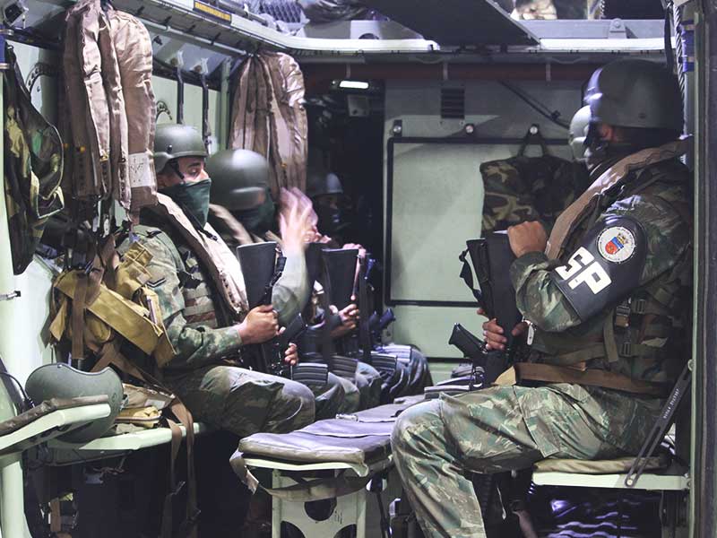 Grupo de Polícia embarcado, aguardando o início do deslocamento