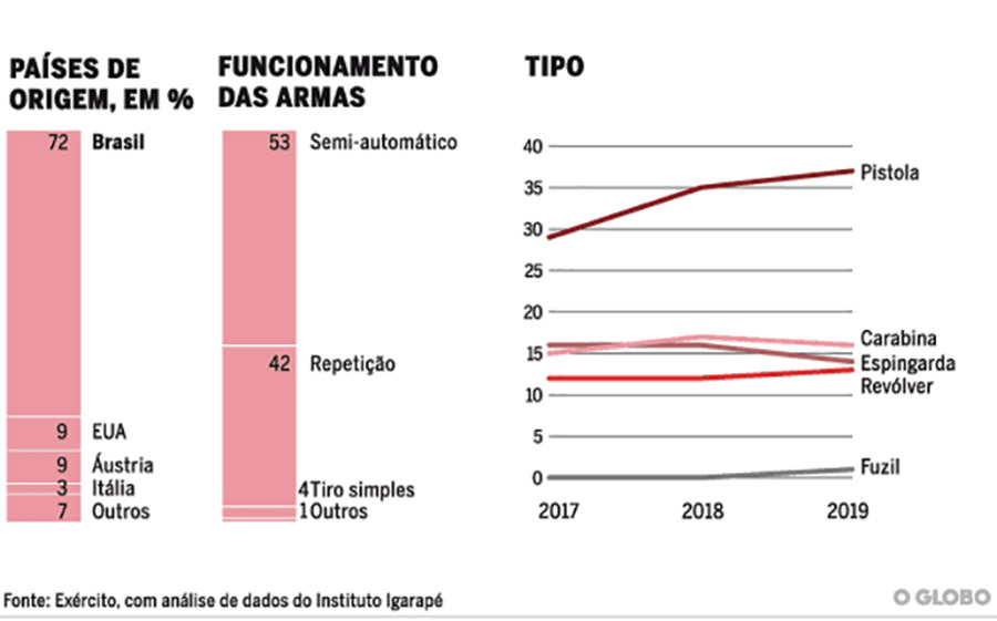 SÃO PAULO E RIO – Em janeiro de 2019, o Brasil dava o primeiro passo rumo à expansão do armamento da população. Um decreto do presidente Jair Bolsonaro, seguido de uma série de outras alterações nas normas, permitiu ao brasileiro não só comprar mais armas de fogo e munições, mas também ter acesso a um arsenal mais potente. Fuzis, por exemplo, antes restritos às forças de segurança, agora podem ser adquiridos por civis— em compras que podem ser feitas pela internet — para a prática de tiro esportivo e caça. A facilidade de acesso resultou num salto do arsenal.
