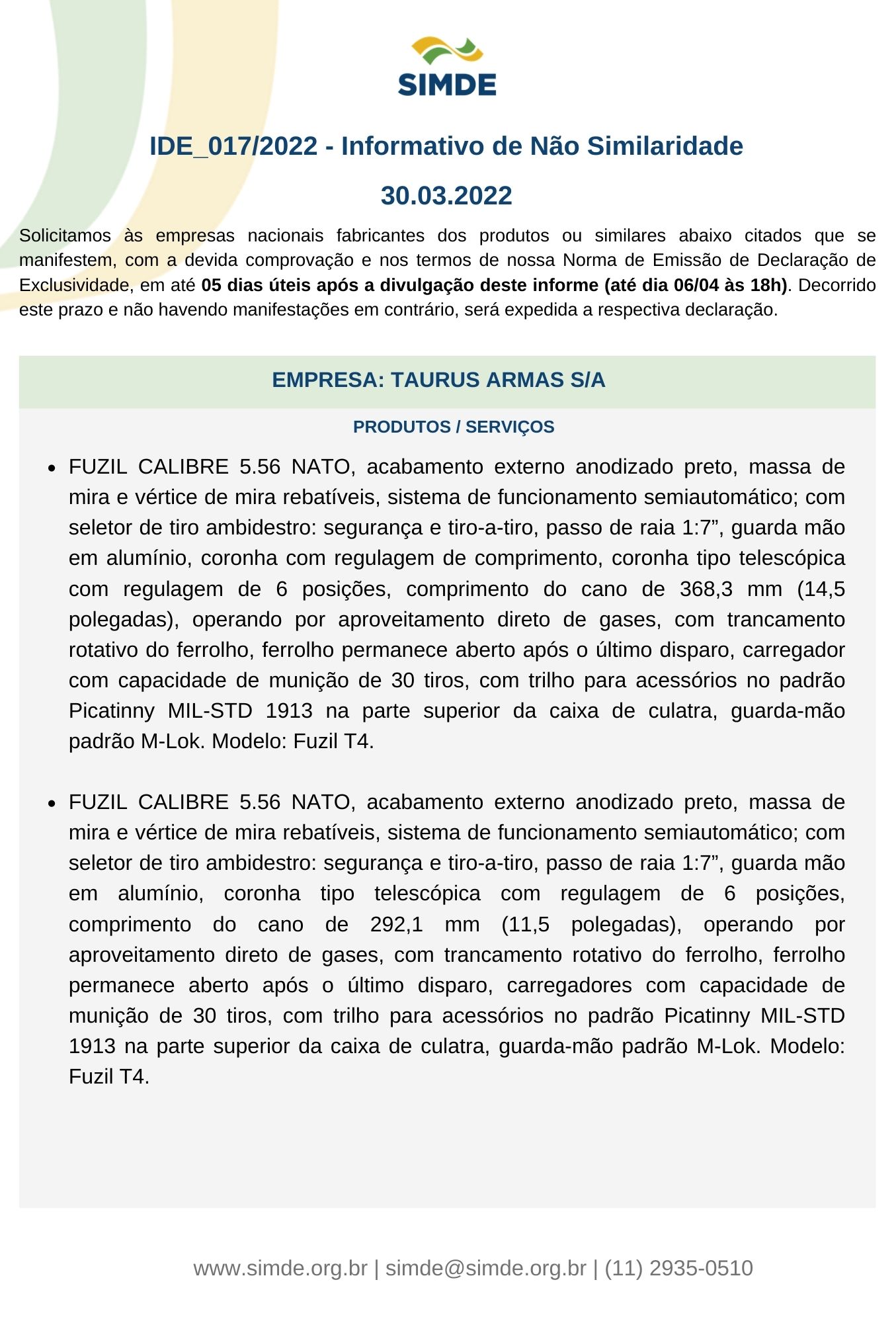 Data: 30 Março 2022 EMPRESA: Taurus Armas S/A