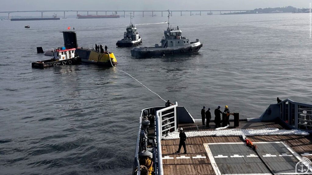 Também participaram o Navio-Patrulha Oceânico “Apa”, do Comando do 1º Distrito Naval, o Navio de Apoio Oceânico “Mearim”, do Comando do 5º Distrito Naval, e a aeronave P-3AM “Orion”, da Força Aérea Brasileira.
