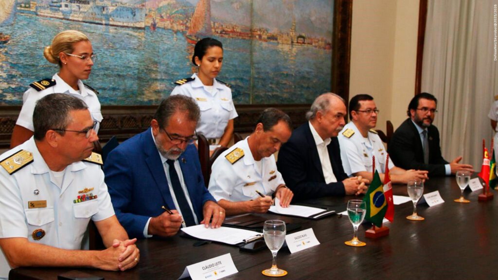 Com o propósito de estabelecer bases para uma cooperação institucional voltada ao desenvolvimento de estudos técnicos e análises de viabilidade de novos materiais de emprego militar, a Marinha do Brasil (MB), por meio do Corpo de Fuzileiros Navais (CFN), celebrou Protocolo de Intenções com a empresa Taurus Armas S.A., na terça-feira (10/2), na Fortaleza de São José, no Centro do Rio de Janeiro. A parceria conta com o apoio institucional do Banco Nacional do Desenvolvimento Econômico e Social (BNDES).