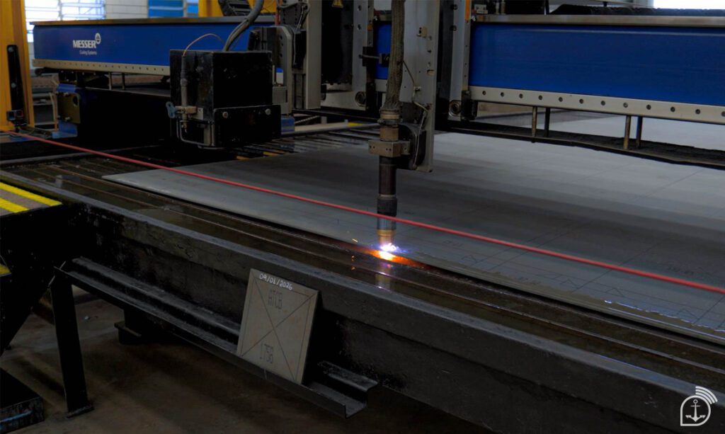 O primeiro corte de chapa representa a transição da fase de projeto para a fase de fabricação do navio. Para que esse marco seja atingido, o projeto detalhado da embarcação deve estar completo e aprovado, garantindo que todos os aspectos de engenharia, planejamento e logística estejam prontos para a produção. A partir desse momento, os recursos começam a ser aplicados de forma intensiva e o cronograma de construção ganha ênfase no controle de qualidade e na eficiência da produção.