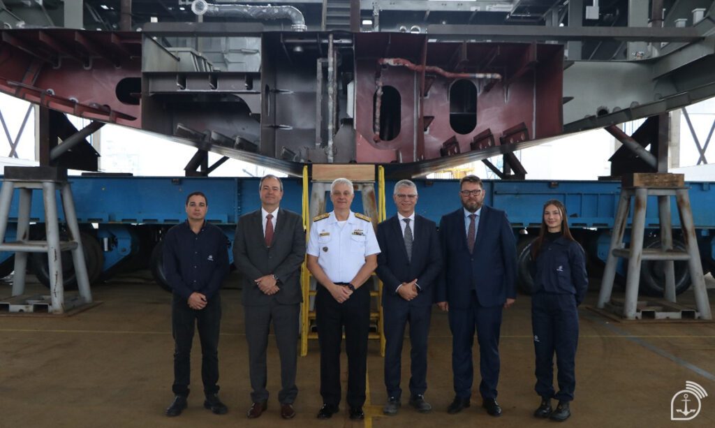 O corte da primeira chapa de aço da Fragata “Mariz e Barros” (F203) marca o auge da produção prevista para o PFCT no TKMS Estaleiro Brasil Sul
