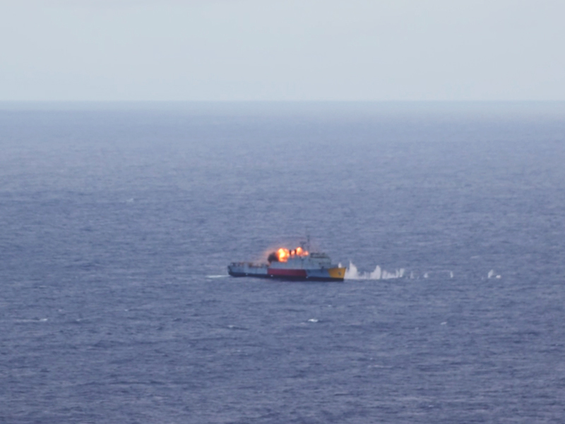 Desta vez, o alvo foi o casco do ex-Navio de Desembarque Doca “Ceará”, considerado de grande porte, que foi rebocado pelo Navio de Apoio Oceânico “Purus” (G152) desde a Base Naval do Rio de Janeiro até a área do exercício, localizada a uma distância segura da costa.